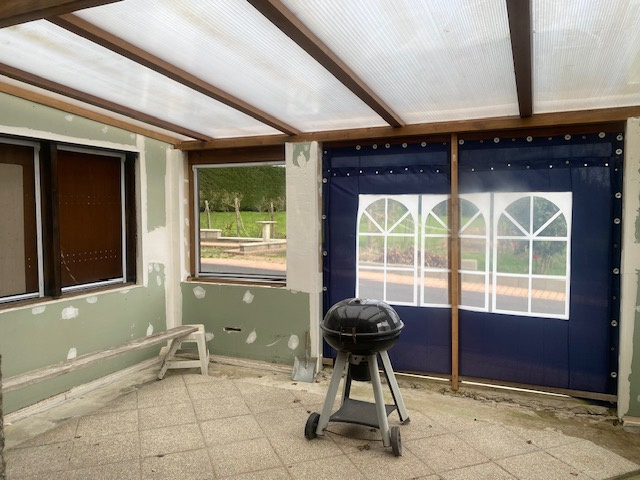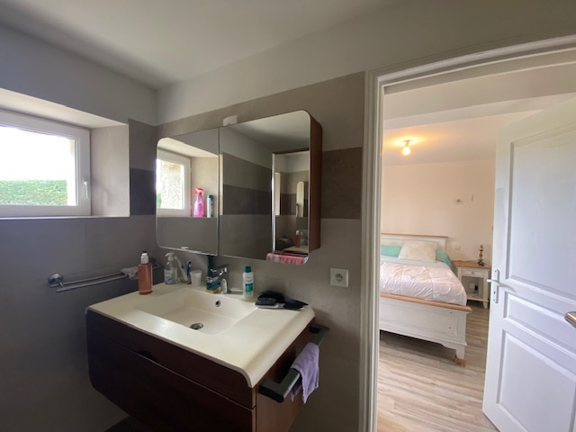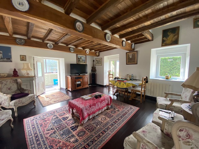 Maison rénovée à vendre à ROHAN (56) composée : au rez-de-chaussée :véranda d'entrée (5 m²), séjour/salon (34 m²), salle à manger (12,50 m²), wc avec lave-mains (1 m²), cuisine aménagée et équipée (7 m²), une chambre avec placard et salle d'eau équipée avec douche à l'italienne et wc attenants (11 m²), dégagement (2,24 m²), arrière-cuisine (2,75 m²), entrée (3,34 m²), buanderie (4,89 m²), une pièce à terminer (15,18 m²) ; véranda (17,50 m²) ; à l'étage : palier avec placard (6 m²), une chambre avec coin dressing (15,82 m²), couloir (4 m²), salle d'eau avec douche (3 m²), une chambre avec dressing et balcon (14,35 m²), salle de bains/wc (7,22 m²), dégagement (3m²), une chambre avec placard (17,50 m²) ; Garage (24 m²) avec grenier au-dessus et cave en sous-sol ; Dépendances (abris bois/atelier/appentis) ; Terrain attenant, l'ensemble sur 3502 m².