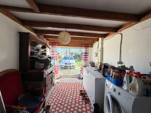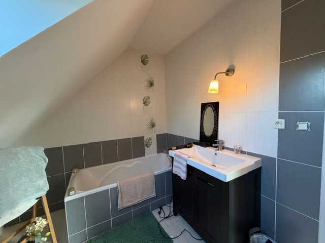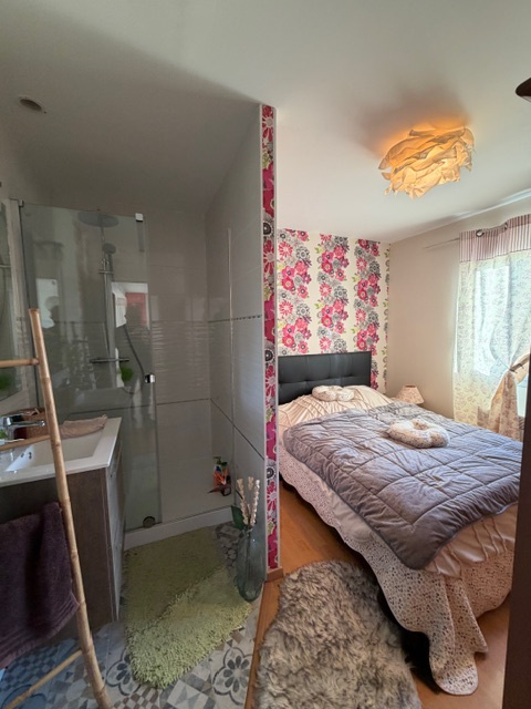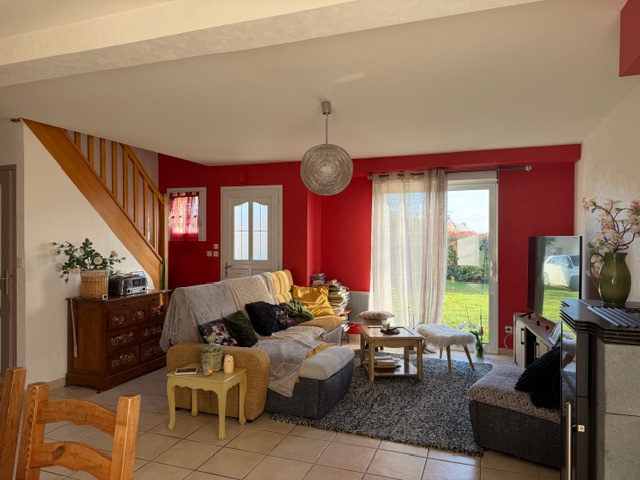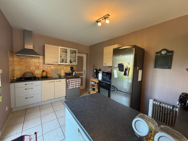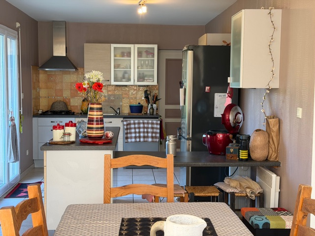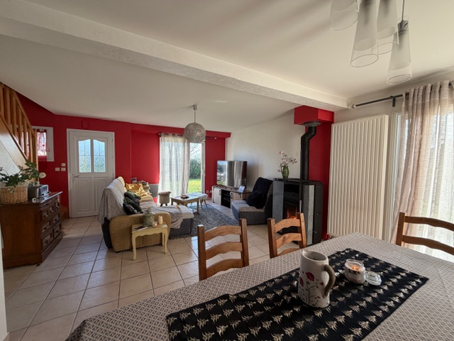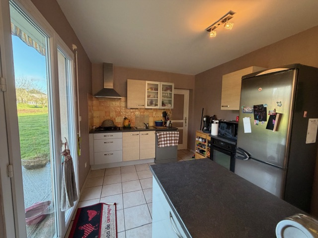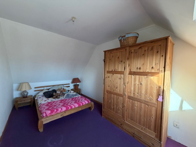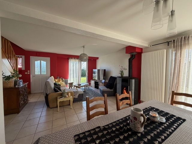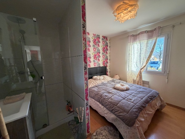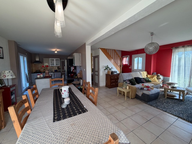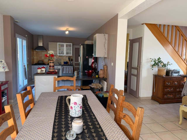 Très belle maison édifiée en 2004 construite en parpaings et couverte en ardoises synthétique, composée : au rez-de-chaussée : entrée sur séjour/salon avec poêle à pellets ouvert sur cuisine aménagée et équipée, wc, une chambre avec douche et meuble vasque, arrière-cuisine/buanderie avec grenier au-dessus ; à l'étage : palier/couloir, deux chambres, salle de bains/wc, débarras ; Carport, châlet. Terrain attenant, l'ensemble sur 4167 m². Prestations : tout à l'égout, ouvertures double vitrage, beaux volumes.