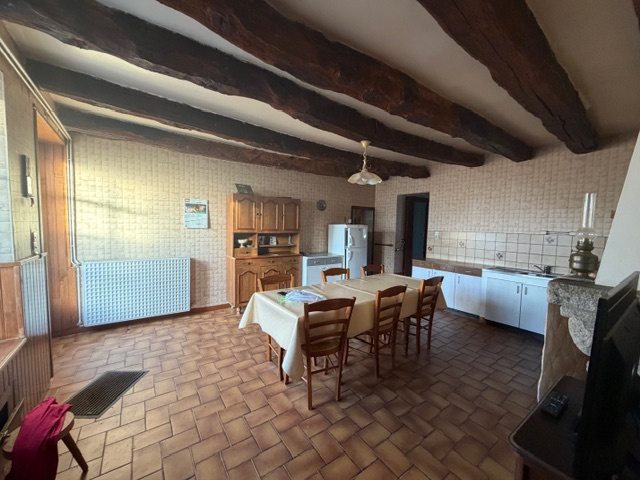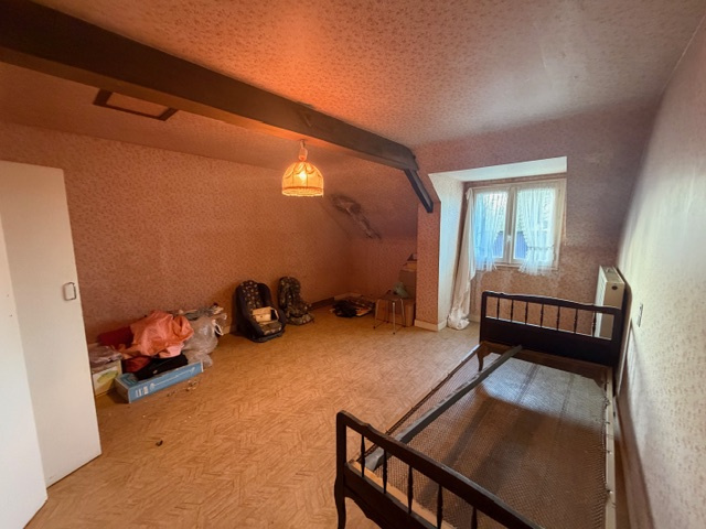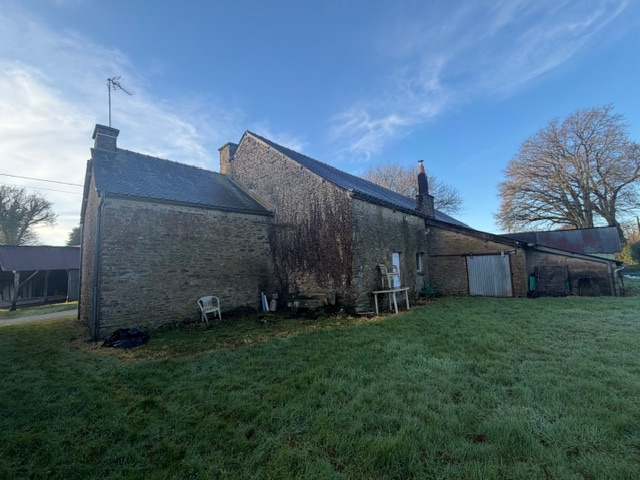 Maison à vendre à RADENAC (56), à proximité de l'axe RENNES-LORIENT comprenant : au rez-de-chaussée : entrée/cuisine (23,50 m²) avec cheminée ouverte, séjour/salon avec cheminée ouverte (19,60 m²), une chambre (12,75 m²), couloir (2 m²), wc (1 m²), salle de bains (3,50 m²)n, une chambre (12,46 m²) ; à l'étage : palier (3,67 m²), une chambre avec placard (10 m²), couloir (5,70 m²), une chambre avec placard (10 m²), une chambre avec placard (15 m²), grenier aménageable. Garage attenant (28,59 m²/coin chaufferie (6 m²), débarras avec grenier au-dessus (26,30 m²) ; Hangar en face. Dépendances en pierres sur terre battue avec cheminée et grenier au-dessus (55 m²) ; Hangar en tôles sur l'arrière (55 m²).. Puits. Terrain attenant, l'ensemble sur 1512 m²